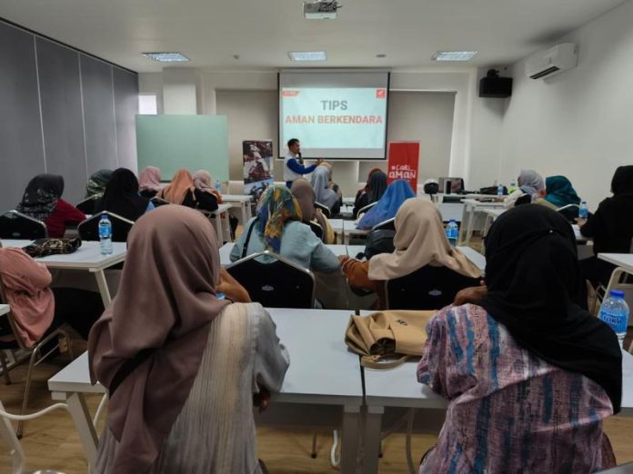 Dalam sesi ini, Febri menjelaskan dasar-dasar keselamatan berkendara, pentingnya penggunaan perlengkapan berkendara yang sesuai standar, serta cara mengantisipasi potensi bahaya di jalan.