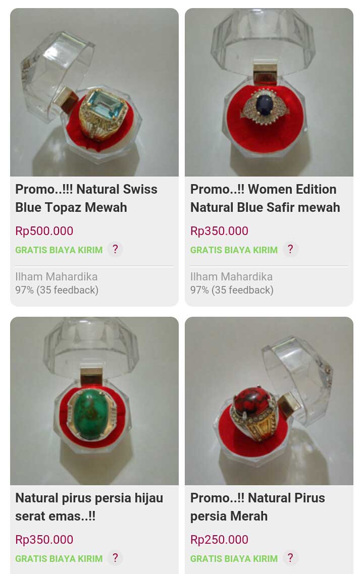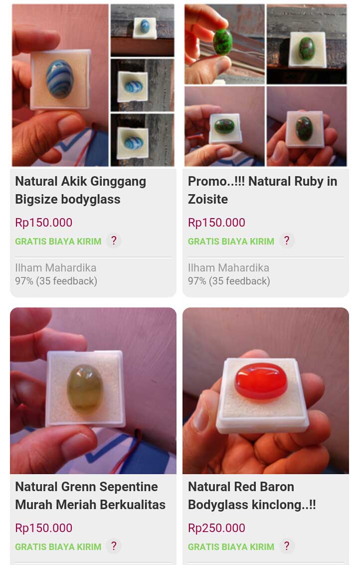 -Enggak, saya juga beli di Jakarta dan saya poles ulang. Saya modifikasi sedikit dan saya jual kembali. Bisa dibilang seperti reseller. Kadang saya ganti ikatannya dengan yang kualitas bagus dan disesuaikan dengan bentuk dan warna batunya.
