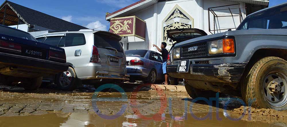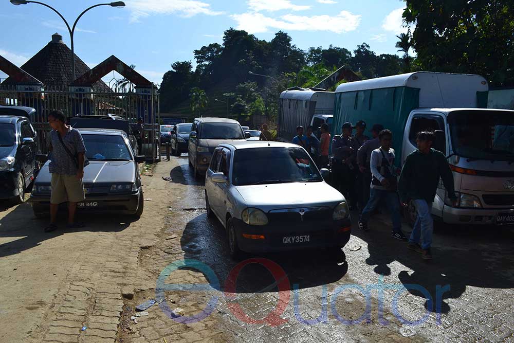 SEMRAWUT LALU LINTAS DI BORDER. Beginilah kondisi lalu lintas di border Entikong yang tidak teratur. Kondisi seperti ini sejak adanya penyempitan jalan karena pembangunan perbatasan-Ocsya Ade CP